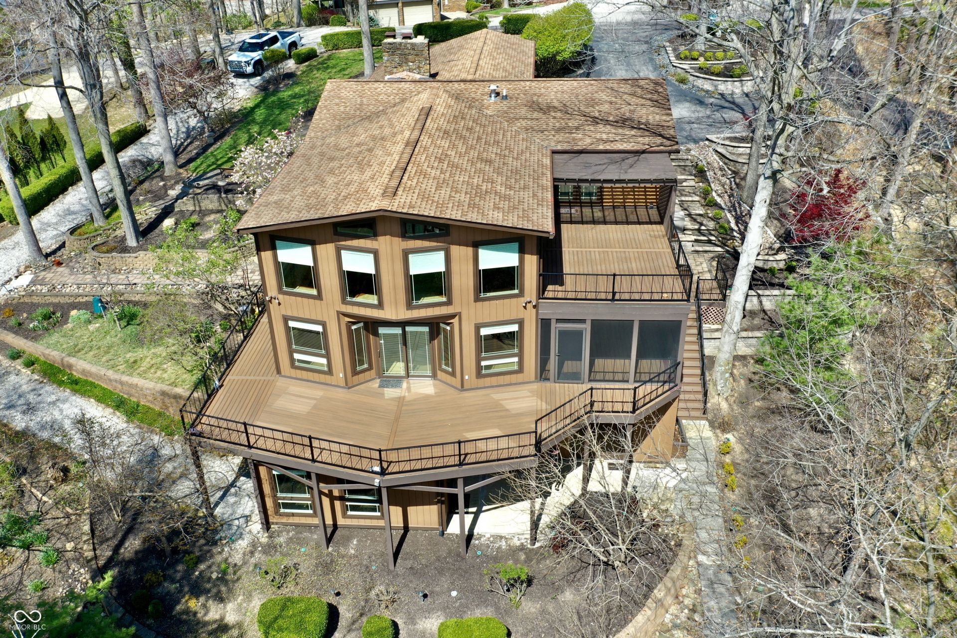 Located on 500 acre Lamb Lake, this beautiful 4 bedroom/3.5 bath home has absolutely everything you need to enjoy privately or entertain friends and family. Meticulously cared for, this property offers 3 levels of usable space. Top level includes 2 bedrooms, full bathroom, recently updated kitchen with large dining area, formal sitting area with fireplace and stunning lake-side views. Middle level offers a spacious family room with soaring 20 ft ceilings and incredible natural light or choose to joy the cozy sitting area around 2nd wood burning fireplace and bar. Primary bedroom on middle level boasts a large walk in closet and access to screened in patio. Lower level has expansive bunk room, full bath and workout/gym area. This home has a screened in porch, open air porch, multiple decks/patios, the outdoor areas will cater to a multitude of wants and loves. Lakeside gazebo is a great option to warm up around the fire pit after a long day on the water. Fully landscaped property and terraced down to large private dock spanning the 150ft of shoreline with power and covered boat lift. Phenomenal water views and lake location providing plenty of space to swim, fish and sunbathe. Great storage space in and out. Decking is maintenance-free trex composite. Outdoor shower, home generator, whole house surge protection, newer tank-less water heater, wine fridge, integrated surround sound speakers; the intricate details on this property go on and on.