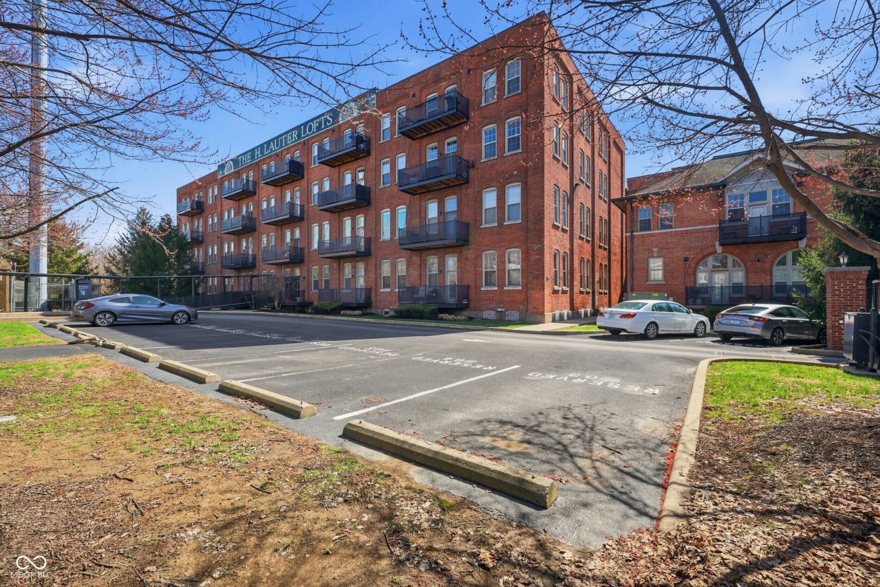 Welcome to H. Lauter Lofts, one of Indianapolis' most distinctive historic conversions, where 100-year-old industrial character sets the stage for everyday downtown-adjacent living. Unit 208 is a loft-style 1-bedroom, 1-bath condo with real character, featuring 12-foot wood beam ceilings, exposed brick walls, exposed ductwork, and warm stained concrete floors that give the space a richness that newer construction simply can't replicate. The open living area gets good natural light through large windows and opens directly to a private balcony. The bedroom is generously sized with the same soaring beams overhead, a closet, and direct access to the full bath. One of the standout features of this unit is the reserved underground parking space, something not every unit in the building includes. Combined with elevator access, a fob-secured lobby, and an intercom system for guests, the day-to-day logistics of city living are well covered here. Positioned just west of downtown, you're close to IU Indianapolis, Riley and Eskenazi hospitals, and the growing medical and research corridor along the White River. Lucas Oil Stadium, Victory Field, Gainbridge Fieldhouse, the Indianapolis Zoo, and White River State Park are all just minutes away. Whether you're a first-time buyer, a student, a medical professional, or simply looking for a low-maintenance place with genuine character, Unit 208 offers solid value in a building unlike anything else at this price point.